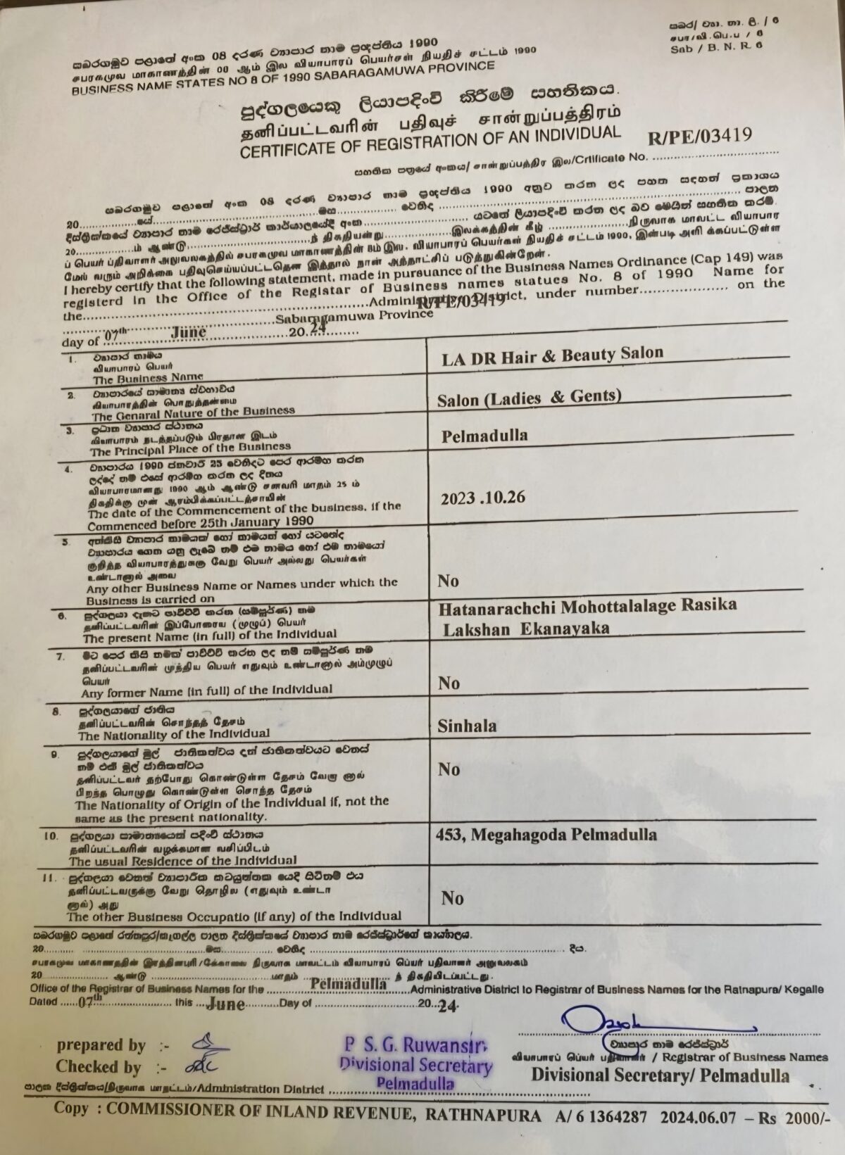 453, Meegahagoda, Pelmadulla